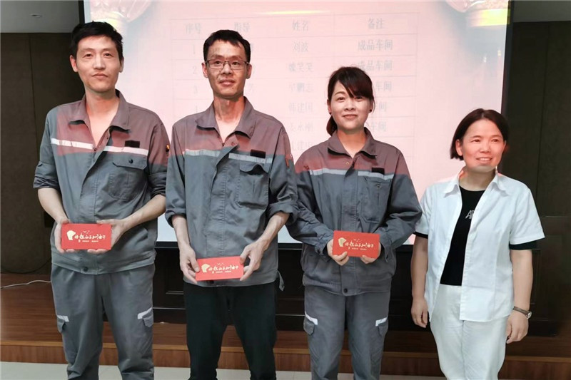 6月21日,中達(dá)新材工會(huì)為第一批達(dá)成“師徒協(xié)議”的師徒頒發(fā)了獎(jiǎng)勵(lì)。中達(dá)新材副總經(jīng)理徐姚松、吳月琴,以及各車間主任、班組長共同見證。